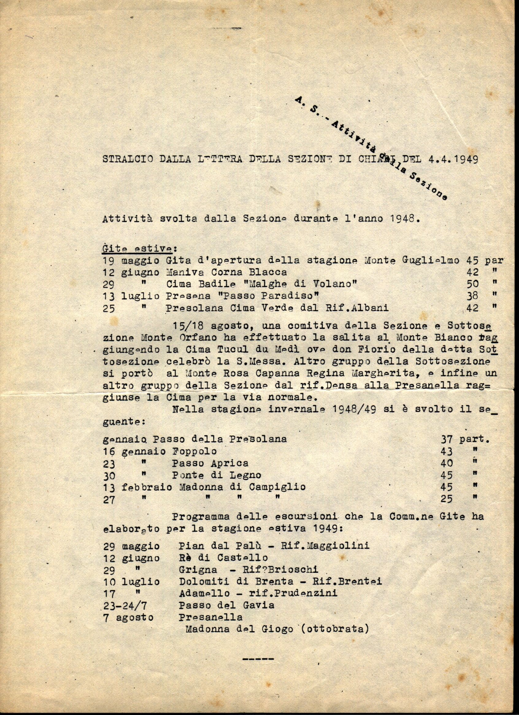 1949 04 04 | Stralcio dalla lettera sulle attività di Chiari del 1948