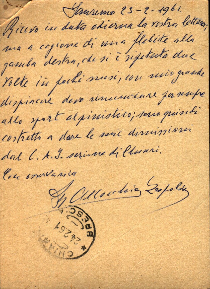 1961 02 23 | Cartolina postale inviata da Allocchio Leopoldo