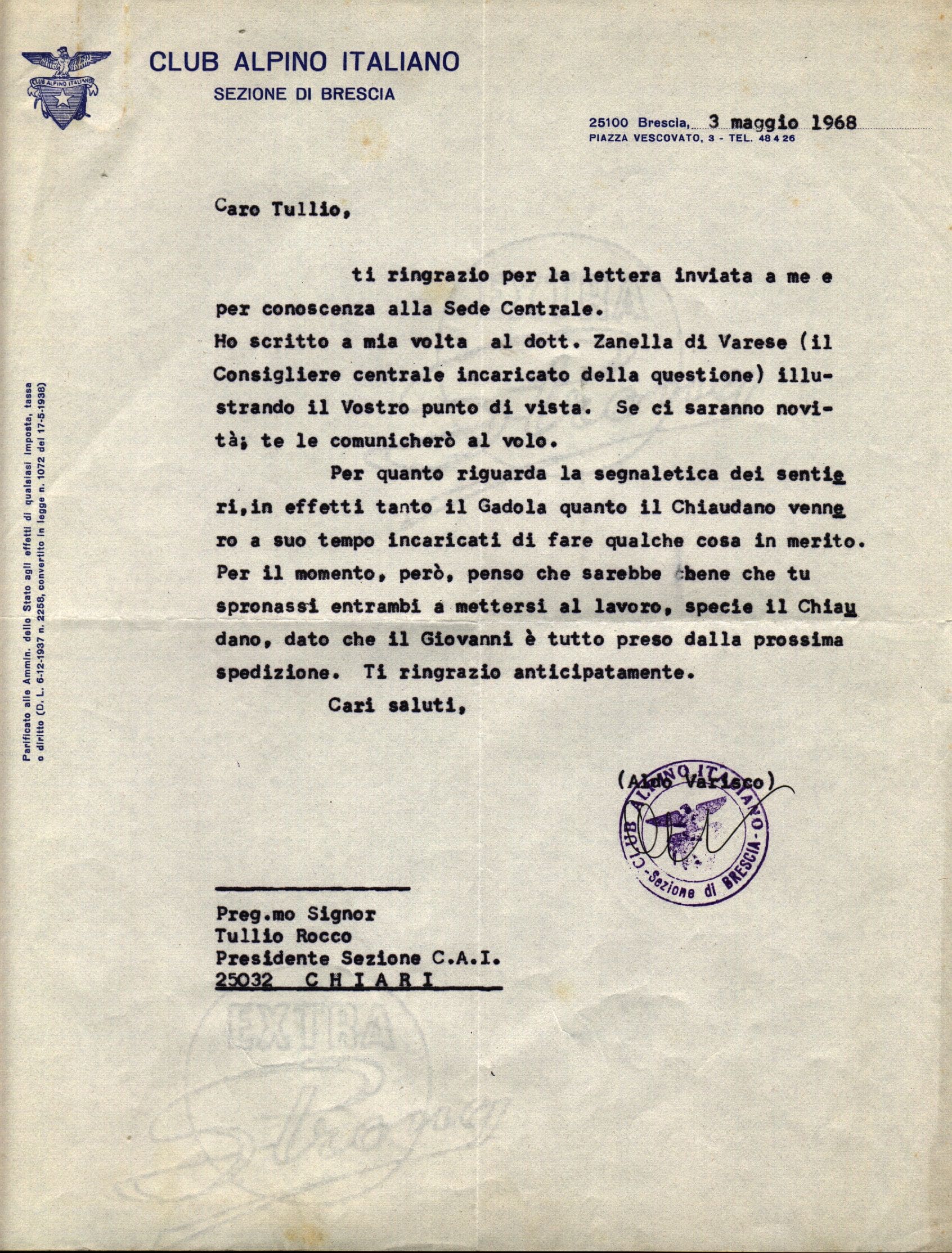 1968 05 03 | Risposta di Aldo Varisco a TR