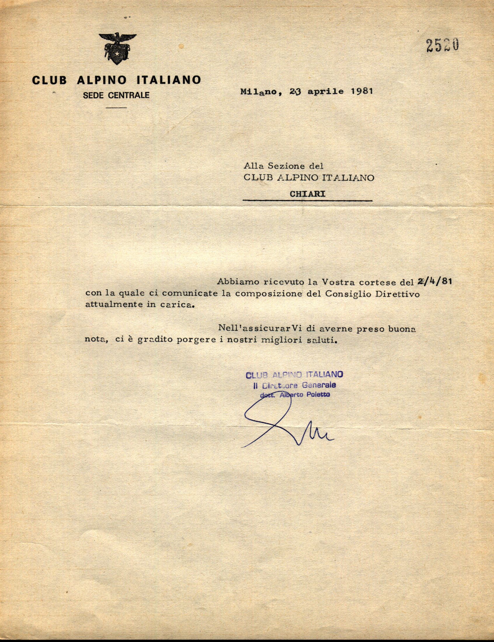 1981 04 23 | Risposta da sede centrale (firmata da Poletto) alla counicazione del nuovo CD
