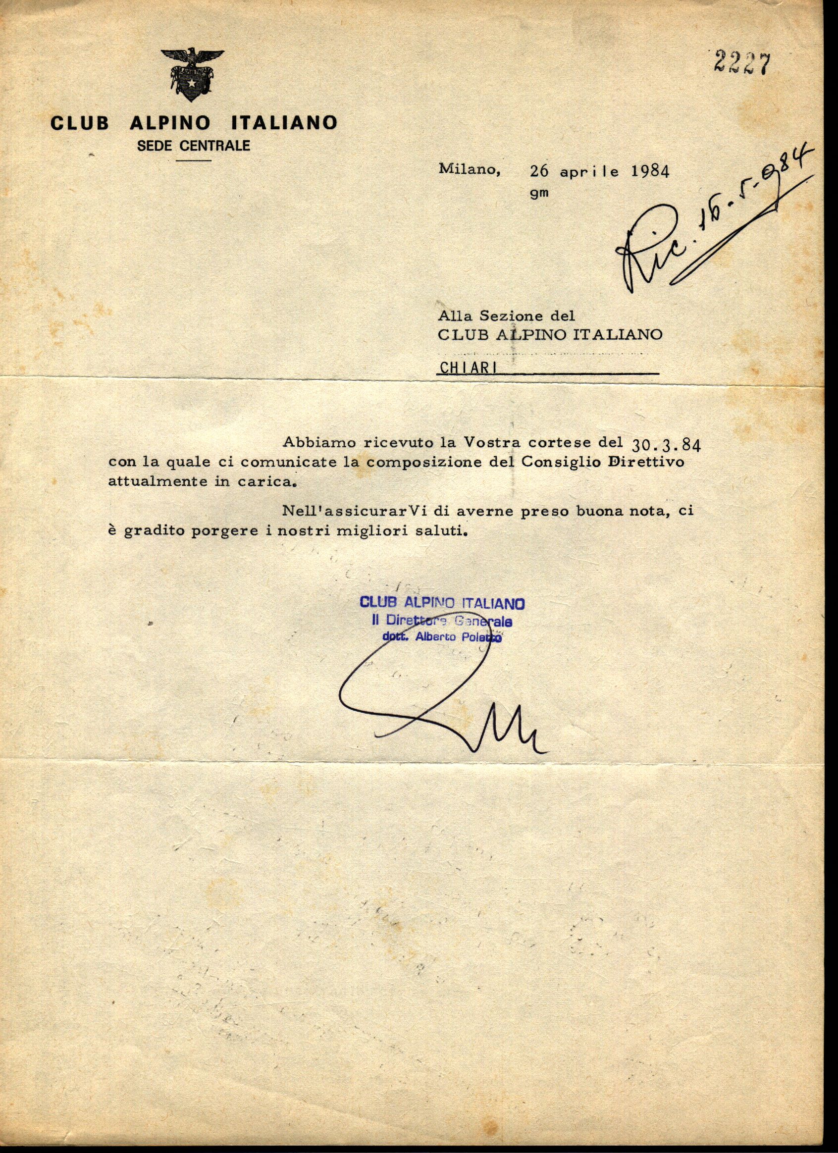 1984 04 26 | Lettera da sede centrale circa nuovo CD