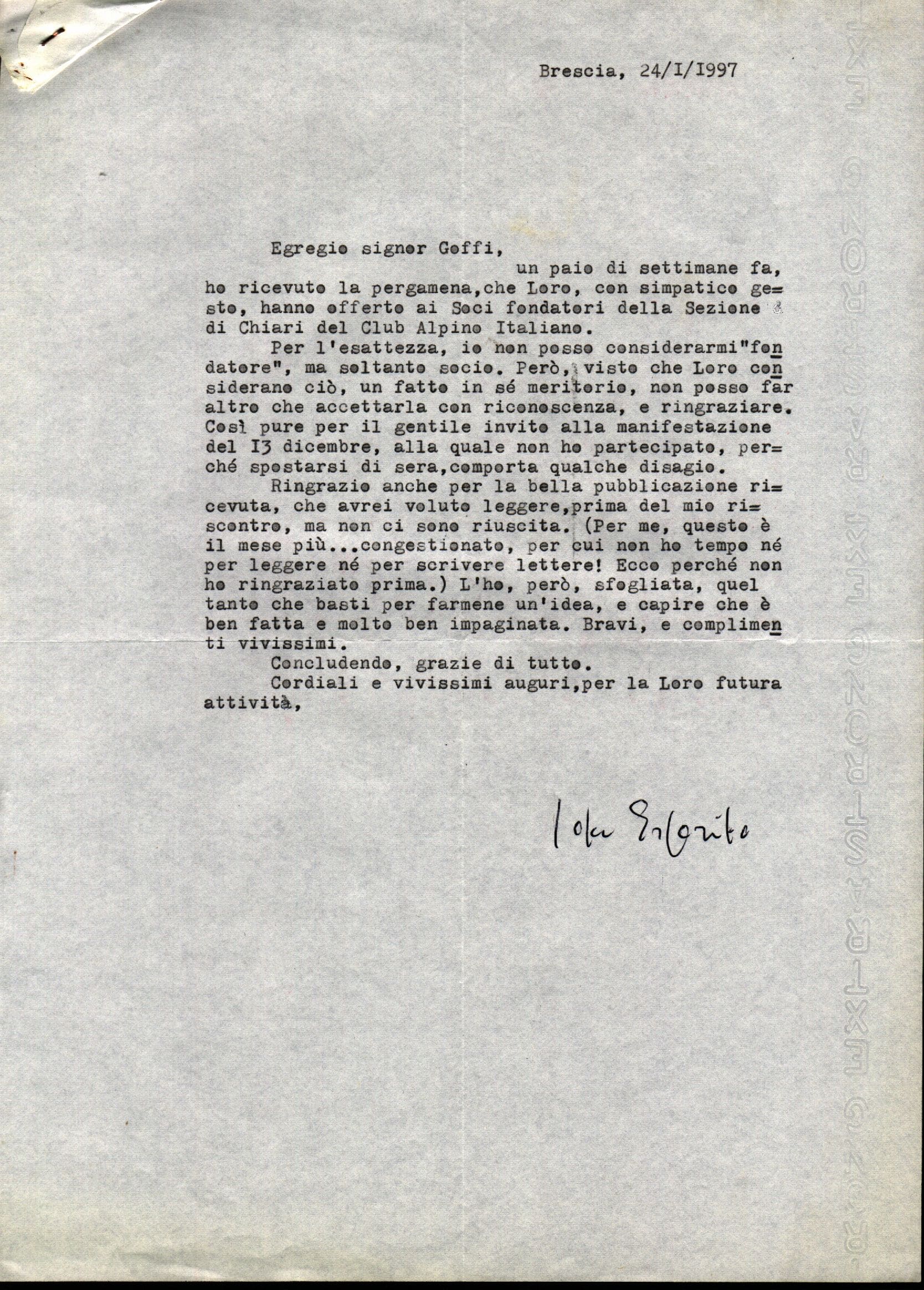 1997 01 24 | Lettera di ringraziamento da parte di Ida Esposito per il 40°