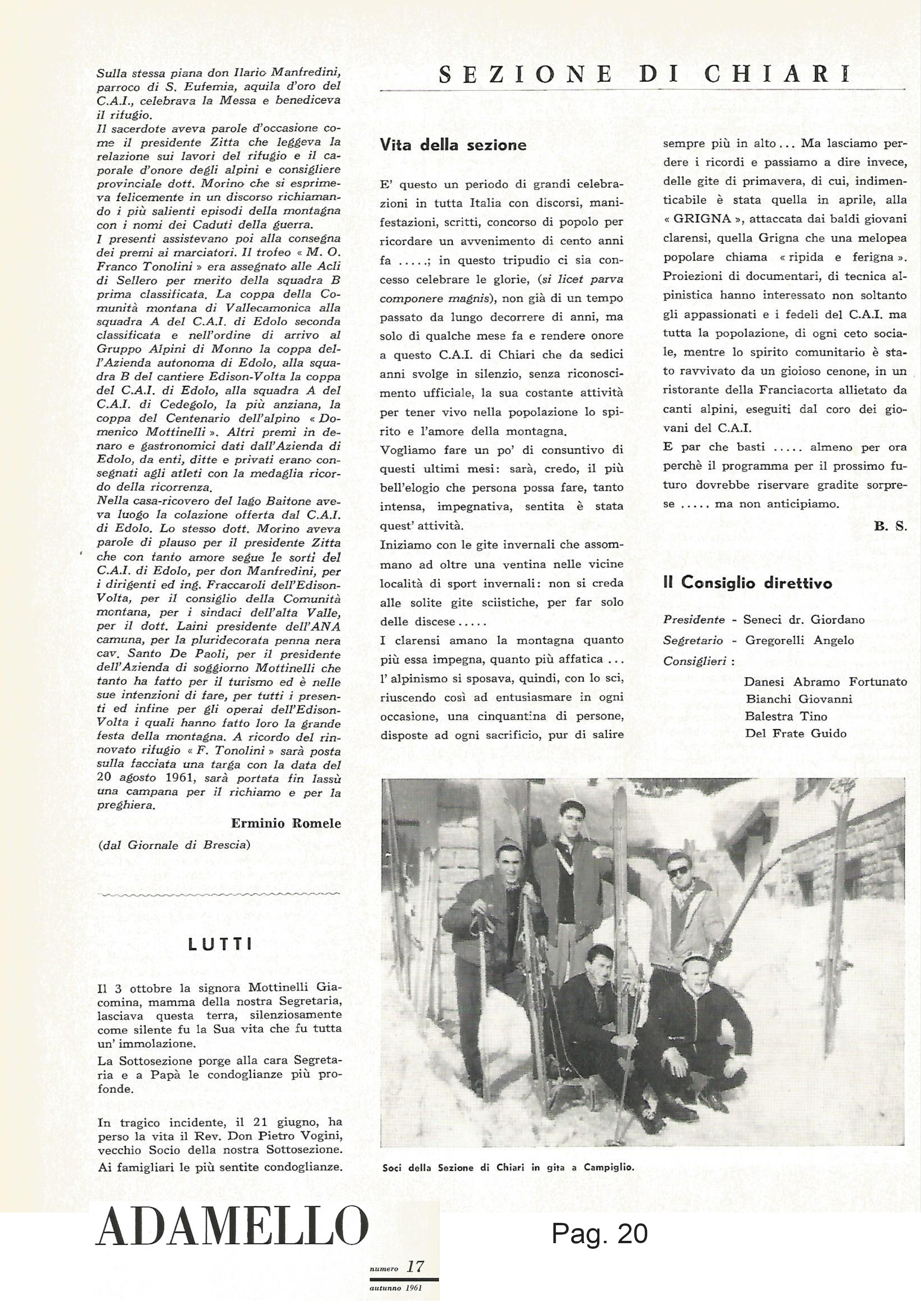 1961 n° 17 | ADAMELLO: Vita della sezione di Chiari