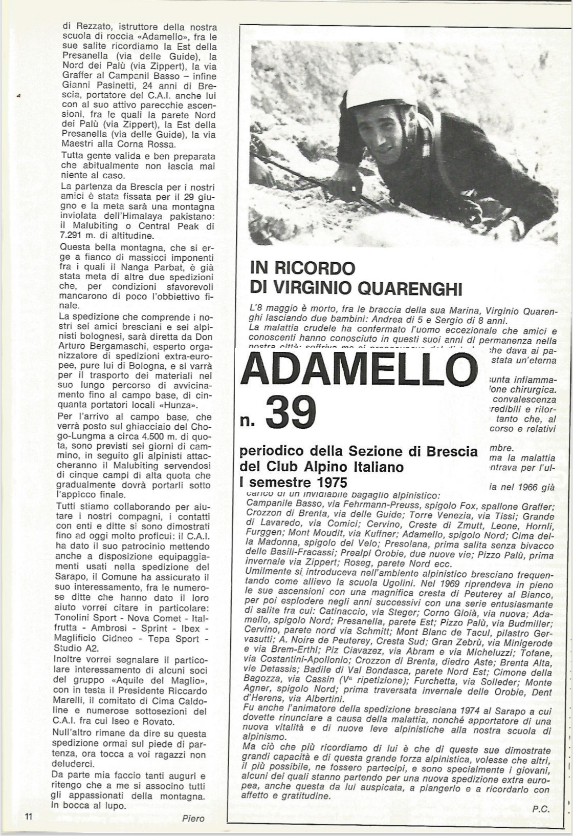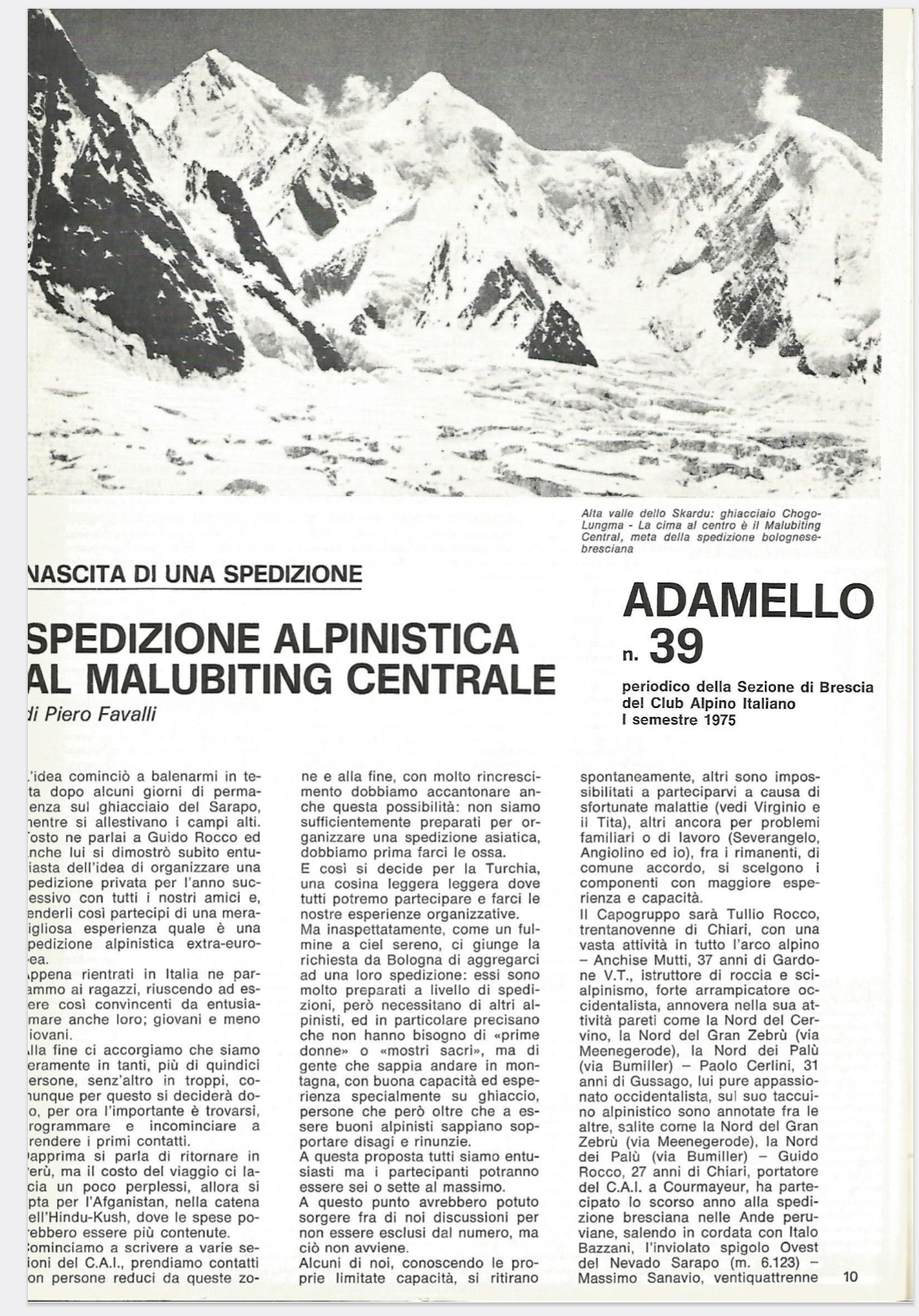 1975 n° 39 | ADAMELLO: Tullio Rocco - Spedizione Alpinistica al Malubiting Centrale