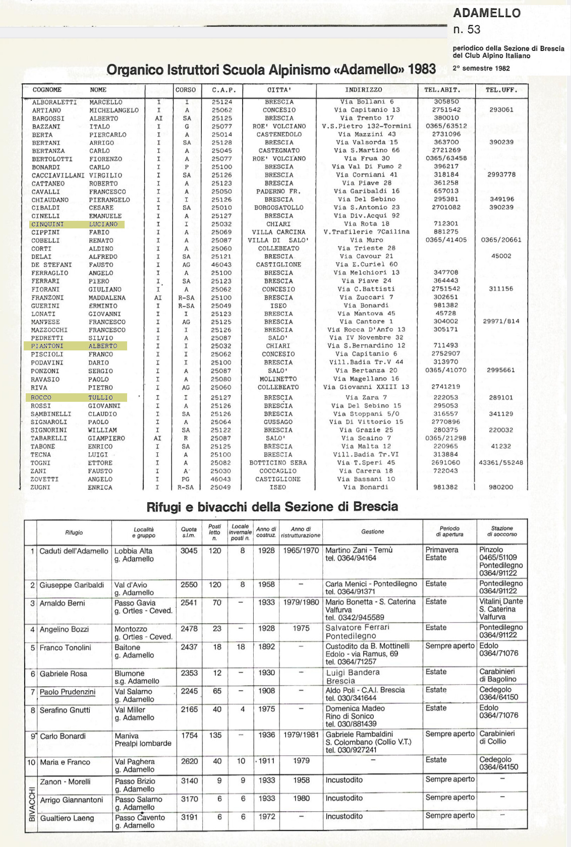 1982 n° 53 | ADAMELLO: Organico Istruttori Alpinismo "Adamello" 1983 - Luciano Cinquini, Alberto Piantoni e Tullio Rocco