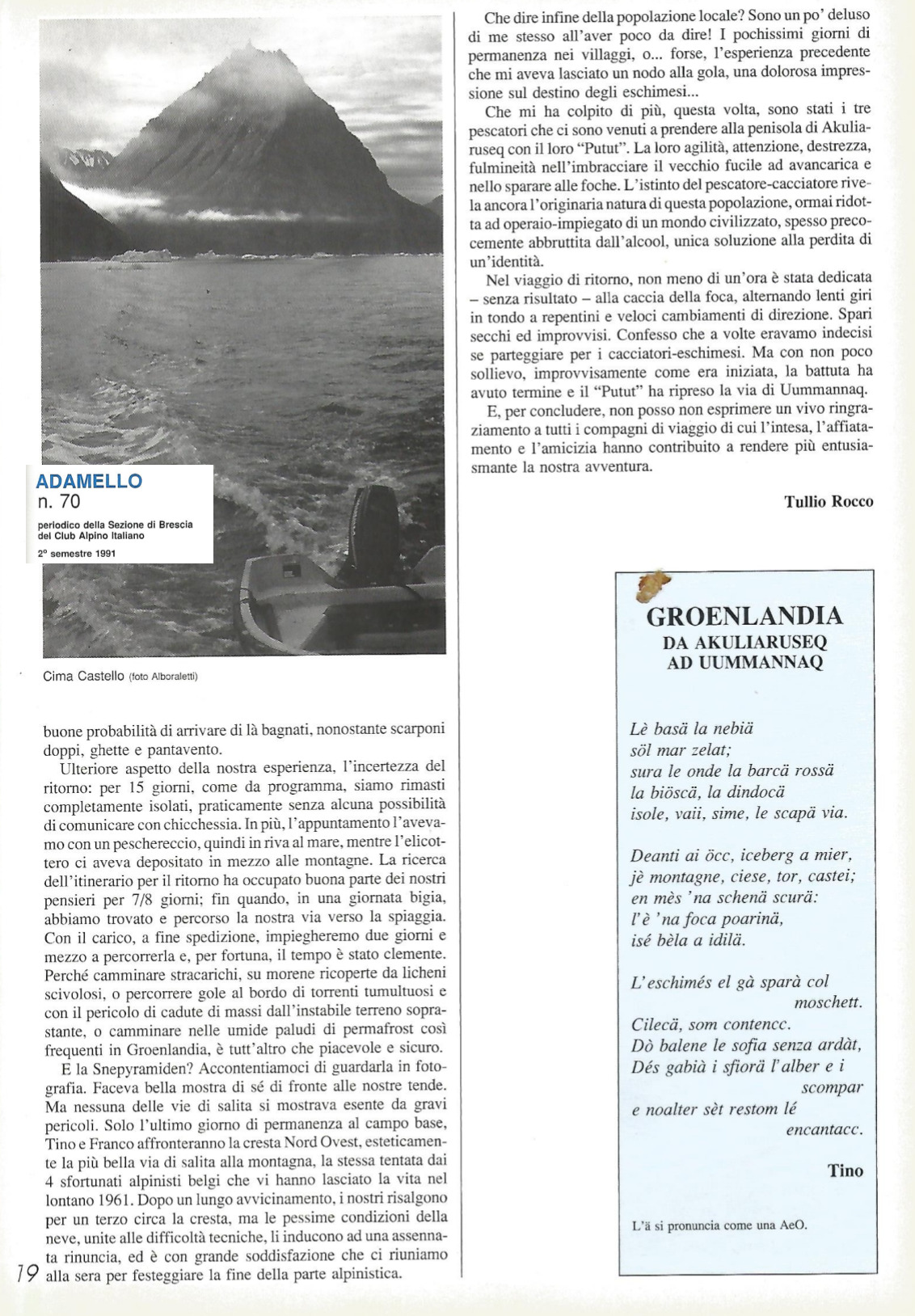 1991 n° 070 | ADAMELLO Tullio Rocco - Groenlandia 1991