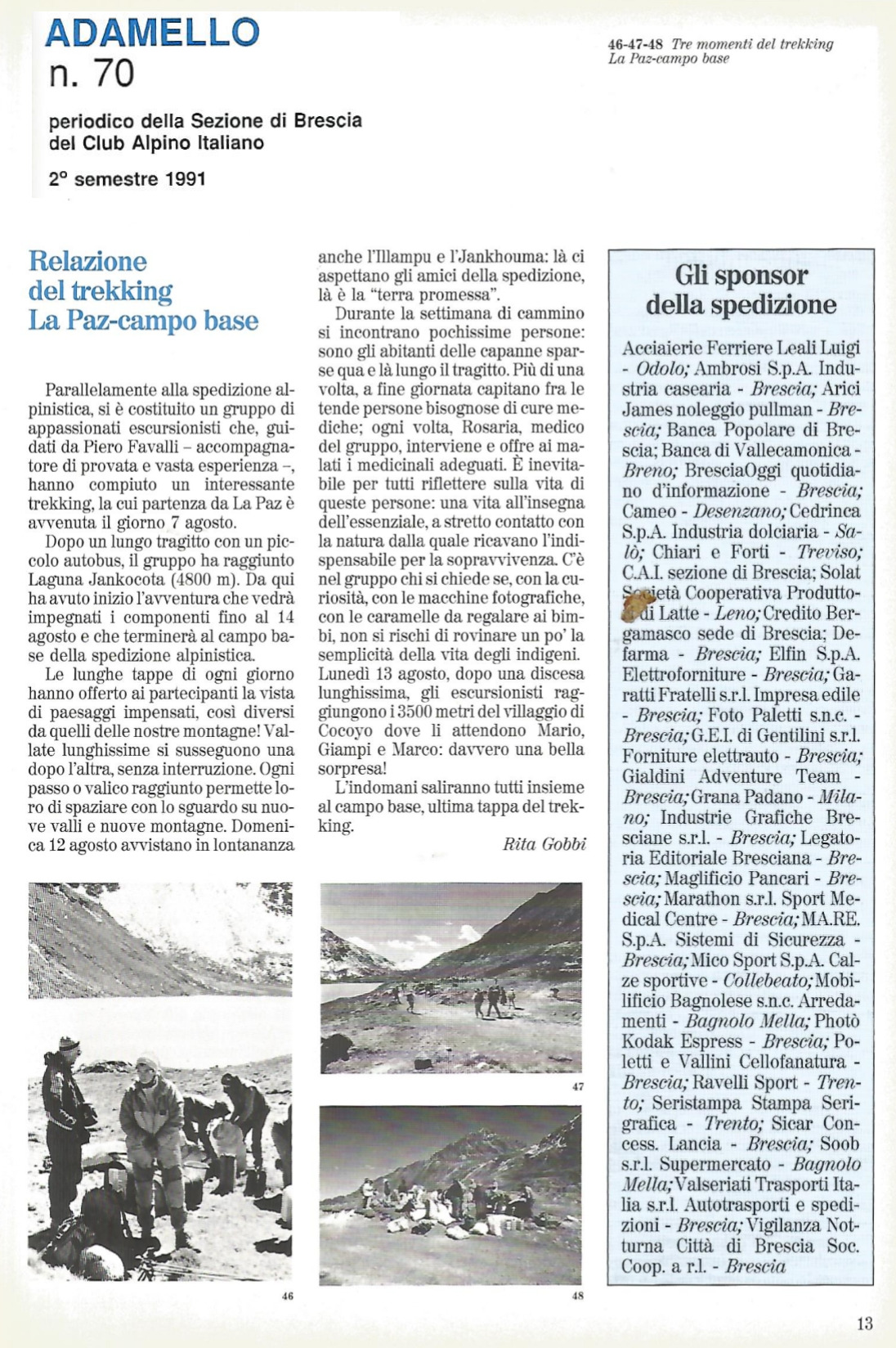1991 n° 70 | Relazione del trekking LaPaz a campo base della spedizione Illampu Jankhouma 1990 di Rita Gobbi
