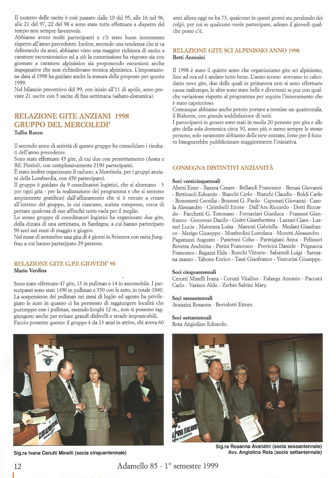 1999 n° 85 | ADAMELLO Tullio Rocco, Relazione Gite Anziani Gruppo del Mercoledì