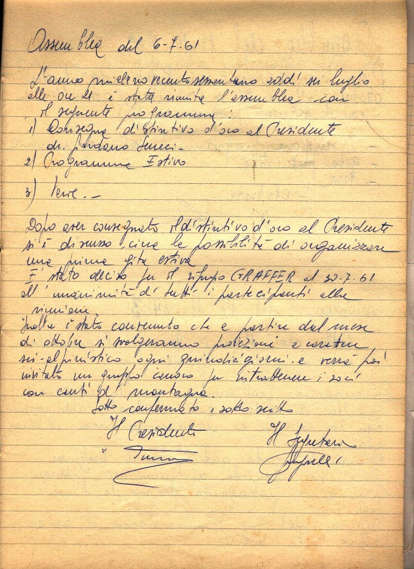 [...] Inoltre è stato convenuto che a partire dal mese di ottobre si svolgeranno proiezioni a acarattere sci-alpinistico ogni quindici giorno e verrà poi invitato un gruppo canoro pr intrattenere i soci con canti di montagna.