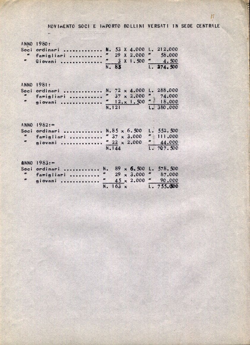 1984 00 00 | Movimento soci e importo bollini versati in sede centrale