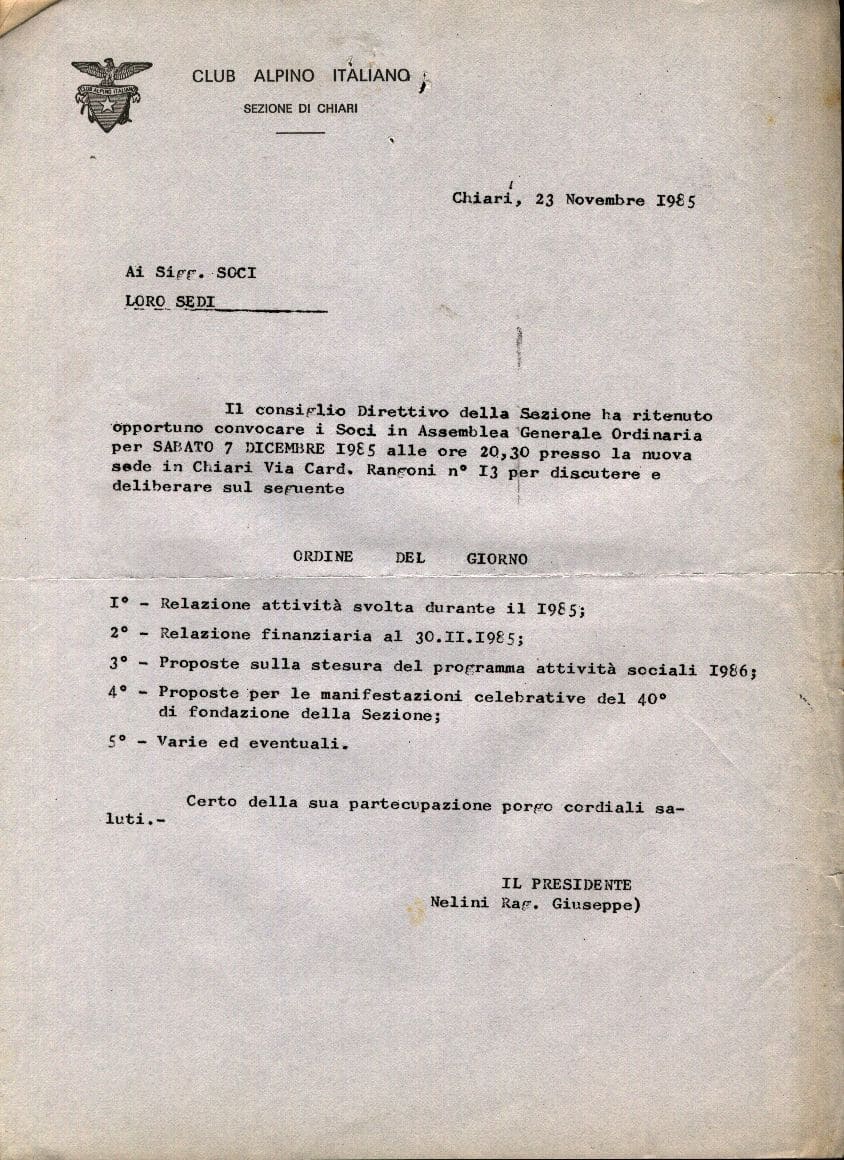 Articolo precedente: 1985 11 30 | Rendiconto 39° anno di fondazione