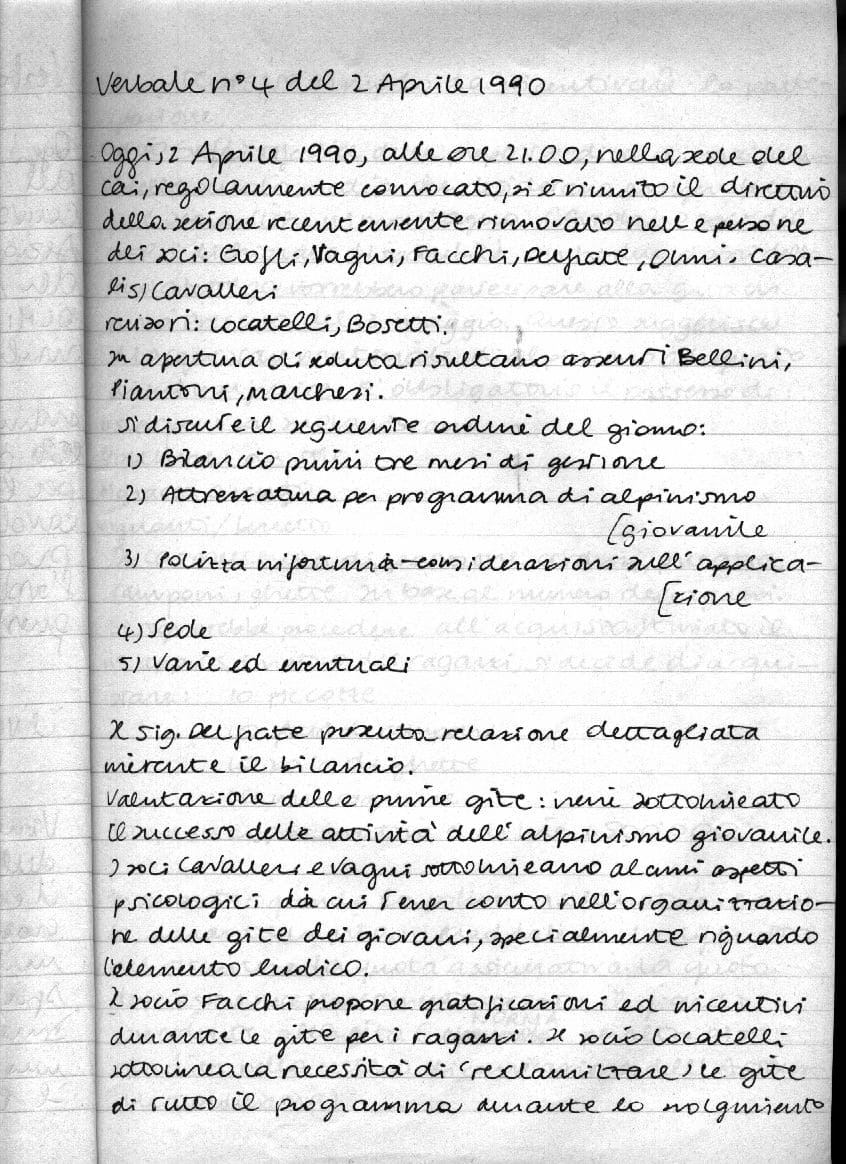 [...] Sede: il presidente legge la lettera della Giunta comunale che assegna al CAI i locali di via Cavalli, quando la ristrutturazione sarà completata ed il canone fissato [...]