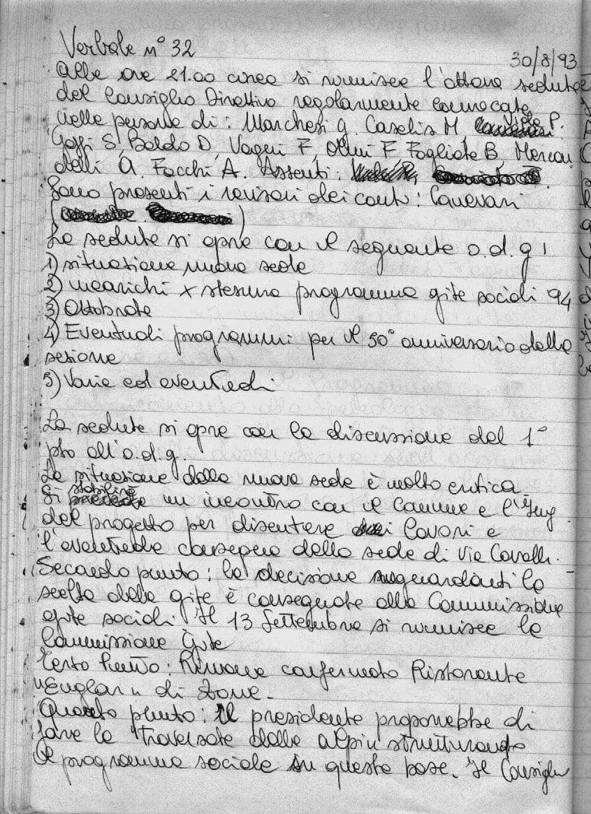 1) Situazione Sede [...] La situazione della nuova sede è molto critica. Si stabilisce un incontro con il Comune e l'Ing del progetto per discutere lavori e l'eventuale consegna della sede di via Cavalli" [...]