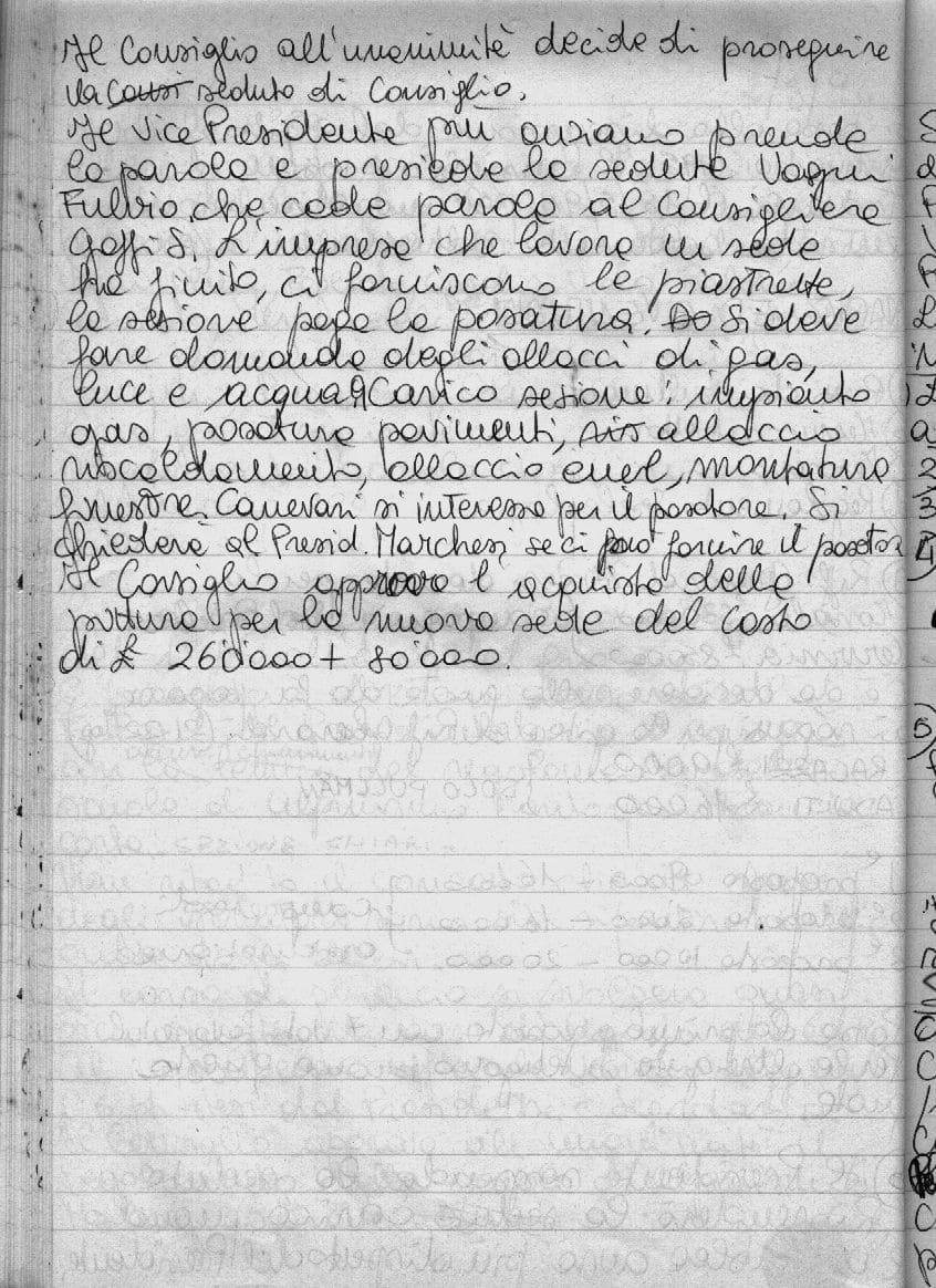 Novità circa la sede: "Goffi S.: "L'impresa che lavora in sede ha finito, ci forniscono le piastrelle, la sezione paga a posatura [...]